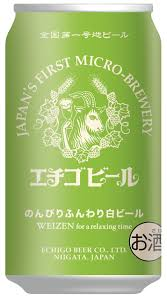 ECHIGO WEIZEN October 8, 2025Beers A-ZECHIGO, JAPAN, kristalweizenjf1155@verizon.net Fizzy lemon-soured herbal frontage outdoes stylish banana-clove sweetness atop white wheat base to ‘crisp, dry finish’ of filtered German-styled Japanese krystalweiss.