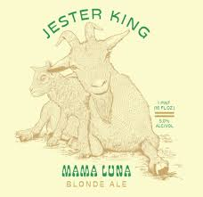 JESTER KING MAMA LUNA BLONDE ALE December 11, 2025Beers A-Zblonde ale, JESTER KING BREWERYjf1155@verizon.net Maize-dried husked graining and barnyard hay acridity receive fizzy lemon musk and mild floral spicing for briskly clean moderation.