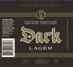 SACRED PROFANE DARK LAGER October 8, 2025Beers A-ZBIDDEFORD ME, dark lager, SACRED PROFANEjf1155@verizon.net Dewy mildewed earthiness clogs mild coffee patter, snug dark-roast hop bittering and feint nut char of middling dark lager.